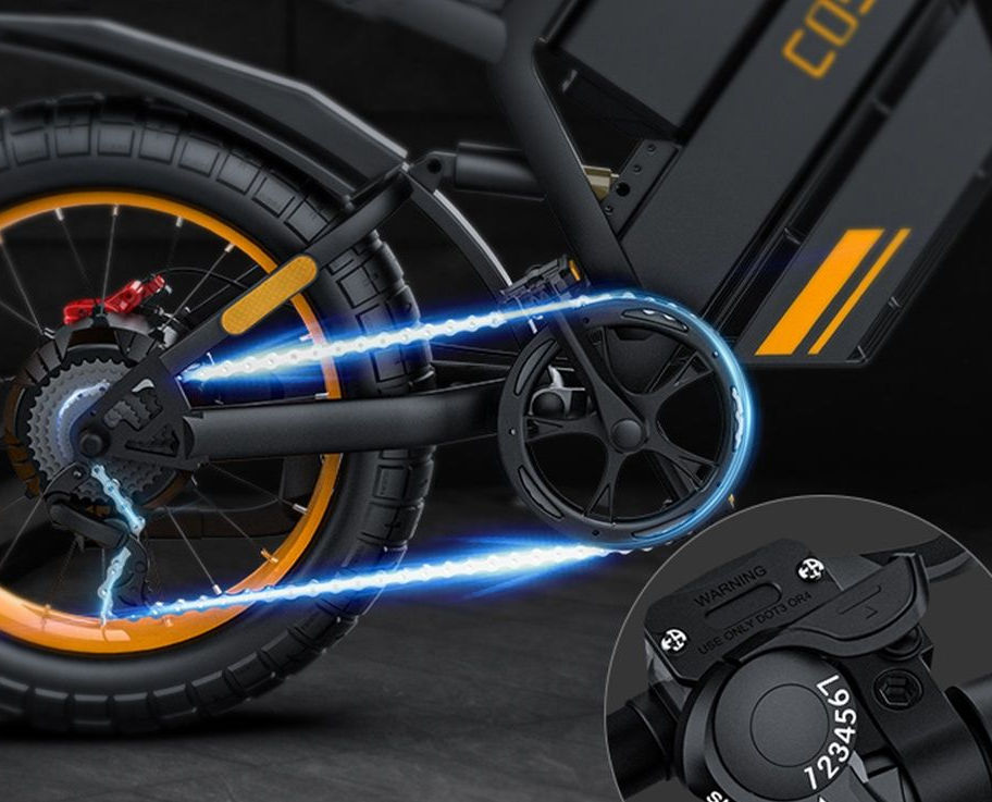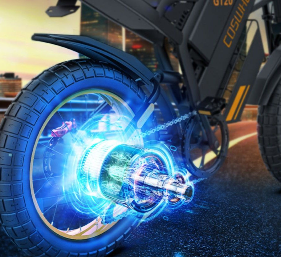 The motorcycle style Coswheel GT20 electric bike is powered by a powerful brushless DC hub motor with internal gear, standard 1000W high-speed rear motor.
