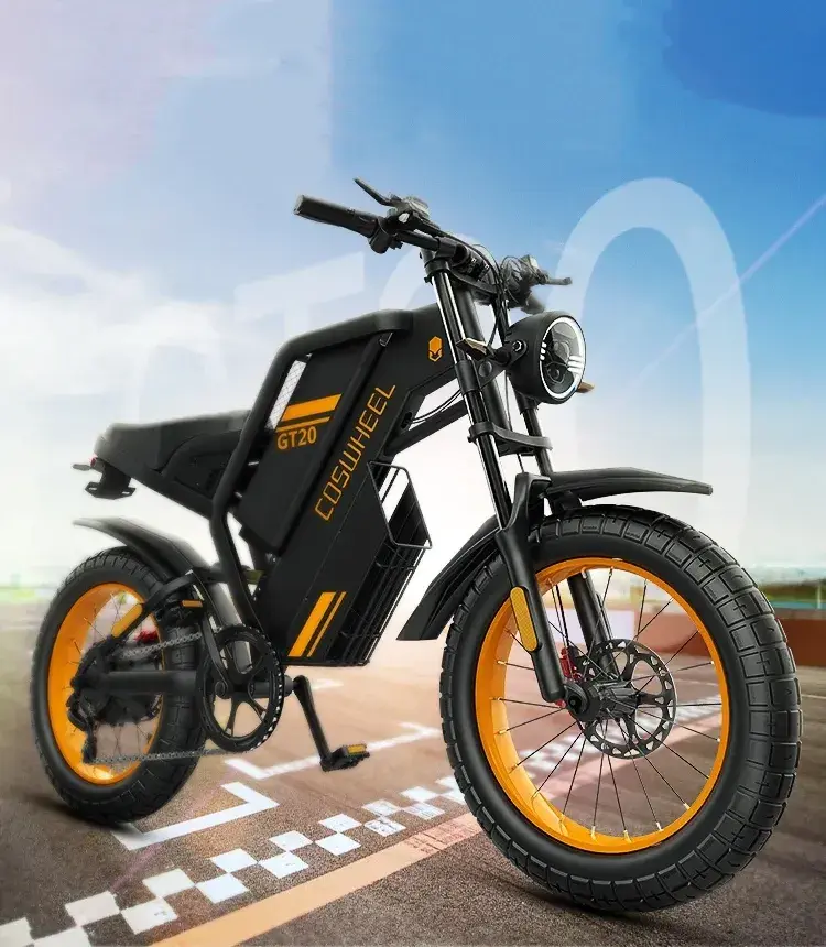 The coswheel gt20 motorcycle-style electric bike is powered by a powerful brushless DC hub motor with an internal gearbox, a standard high-speed 1000W rear motor,