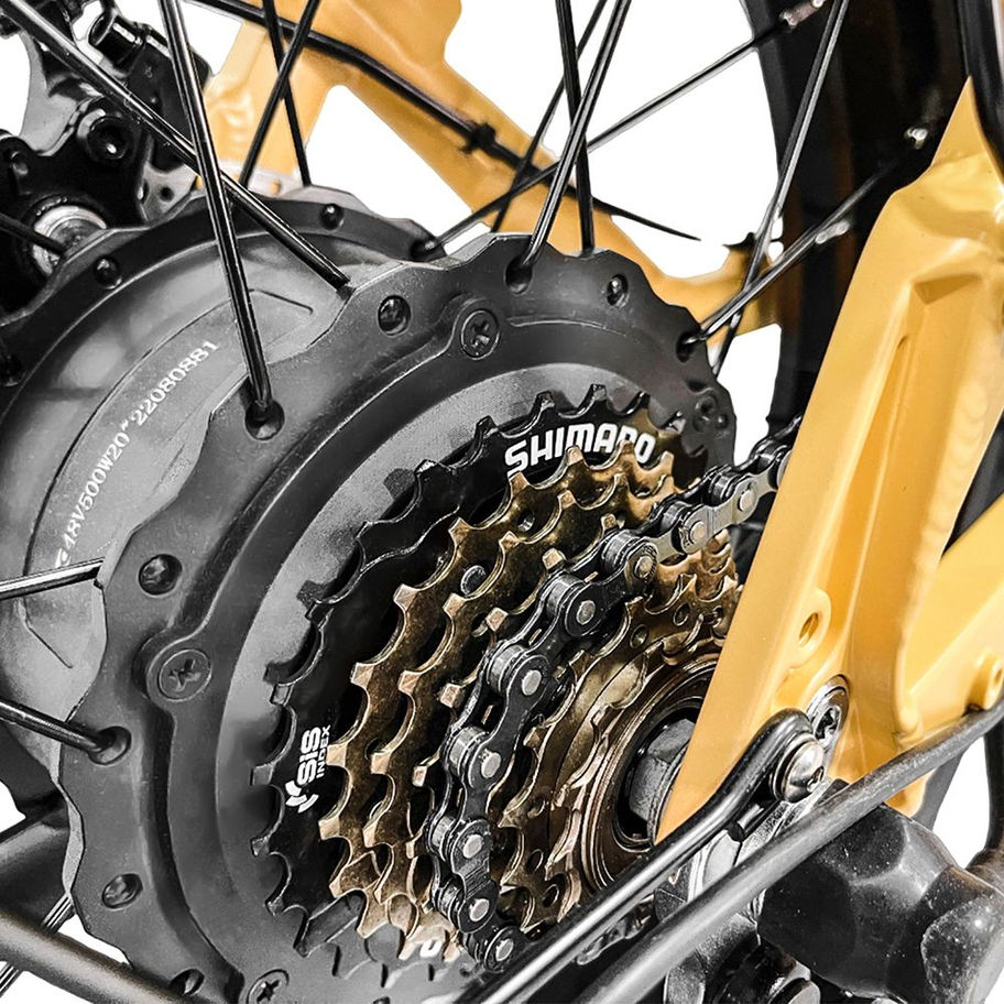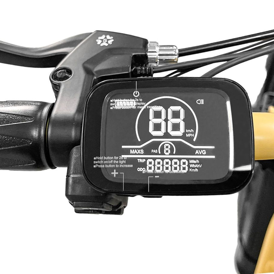 The R1 Urban Electric Bike comes equipped with 20-inch fat tires designed for exploration. These tires are easy to navigate and provide excellent traction and stability, making them perfect for cruising. The tire's advanced tread pattern improves its ability to handle complex surfaces, reducing unnecessary resistance and providing better grip.